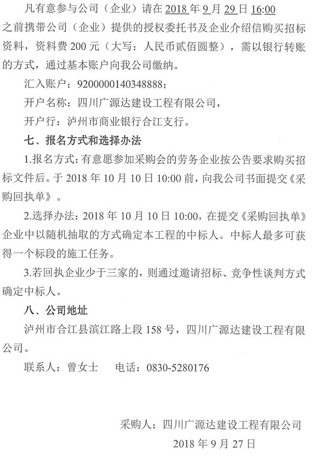 采購公告:四川廣源達建設工程有限公司阜陽文化產業(yè)綜合體(一期)裝修附屬工程勞務分包企業(yè)采購公告(第二次)