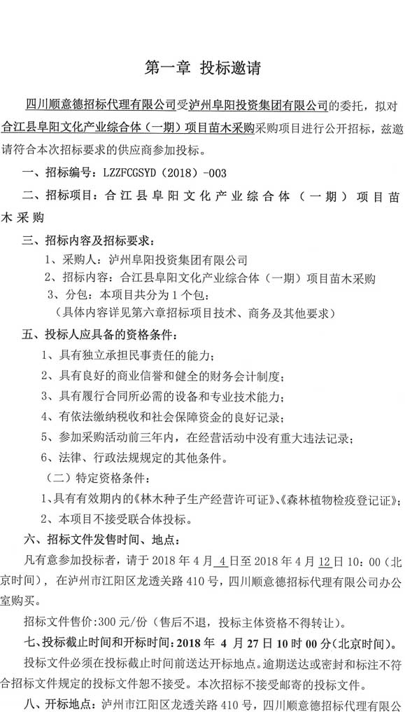 投標(biāo)邀請:合江縣阜陽文化產(chǎn)業(yè)綜合體(一期)項(xiàng)目苗木采購