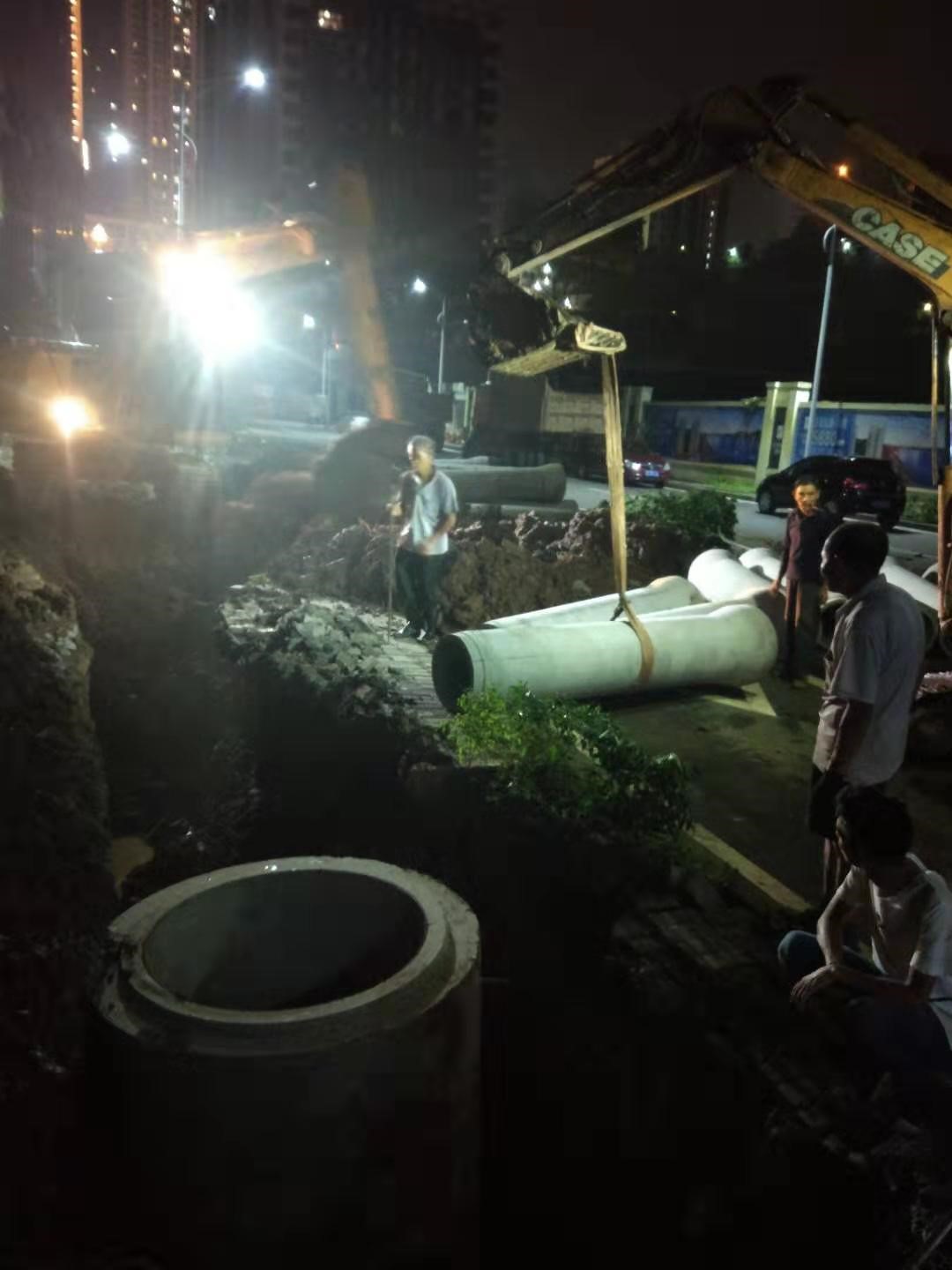 2019年7月15日晚,合江鎮(zhèn)菜壩社區(qū)軍民街因污水管道堵塞導(dǎo)致污水外溢。合江縣城市開發(fā)投資(集團(tuán))有限公司接到通知后,積極響應(yīng)縣綜合執(zhí)法局指令,立即組織施工隊(duì)伍開展應(yīng)急搶險(xiǎn)施工,經(jīng)過連夜奮戰(zhàn),完成了排污管道的應(yīng)急搶修工作,解決了該處化糞池經(jīng)常因上游水量過大導(dǎo)致污水外溢、污染環(huán)境的問題,切實(shí)保障了群眾生命財(cái)產(chǎn)安全。