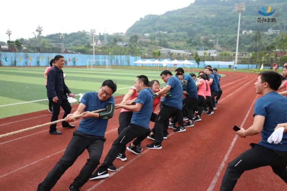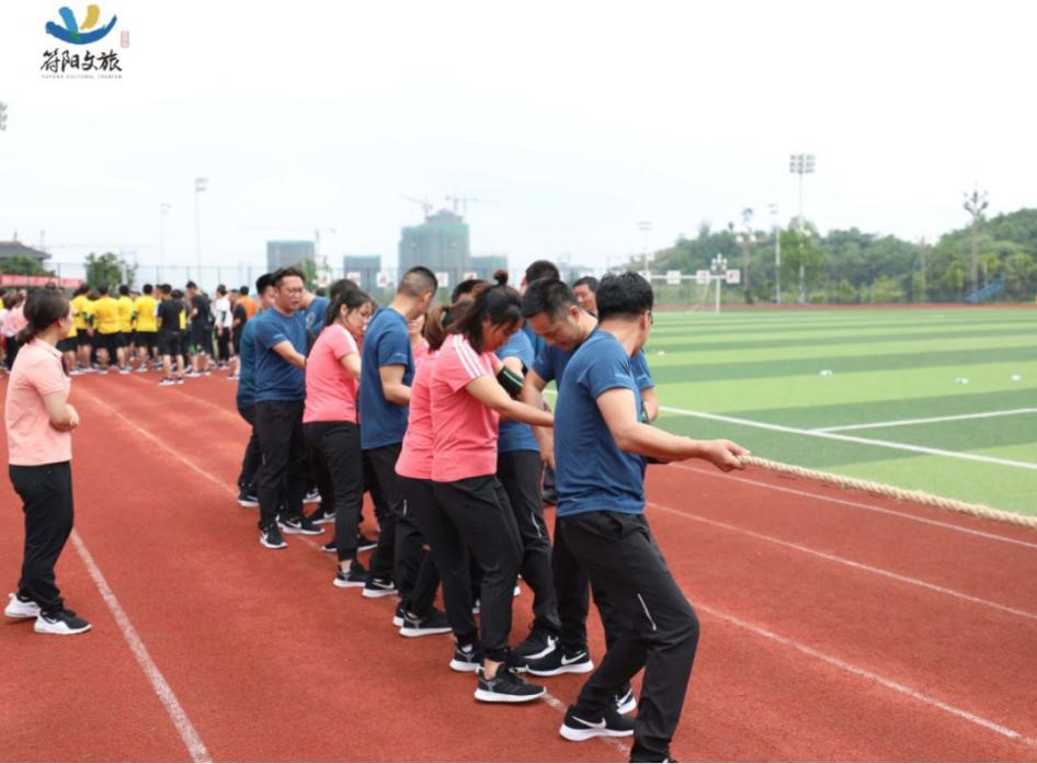 隨著哨聲一響,我們雙手握緊長繩,咬緊牙關(guān)向后拉,為了把握節(jié)奏形成合力,心里默念著“一二、一二”,場上一時(shí)僵持難下,但難敵強(qiáng)悍對手,第一局廣源達(dá)勝。這仿佛符合多數(shù)人的預(yù)期,但我們怎會被拘于這固定印象,越戰(zhàn)越勇才是符陽文旅人的風(fēng)姿。第二場對決比第一場更加艱難,一開場廣源達(dá)占據(jù)絕對優(yōu)勢,我們險(xiǎn)被拉到了終線,全憑一口氣死撐,牙關(guān)咬緊,身體后傾,不斷降低重心,腳步穩(wěn)扎,做著別人眼里無畏的掙扎。一定不能越線!在超高壓下堅(jiān)持了十余秒,那一刻拼的就是韌勁!一群瘦弱的文旅人憑著一股拼勁慢慢把賽場主動權(quán)掌握在了自己手中,每向后移動一步,心里的勁更足了,如荒漠迷路的旅者遇見了綠洲,我們也尋得了力量之源。當(dāng)現(xiàn)場歡呼聲響起時(shí),我們已癱坐一片,不敢置信,我們贏啦!