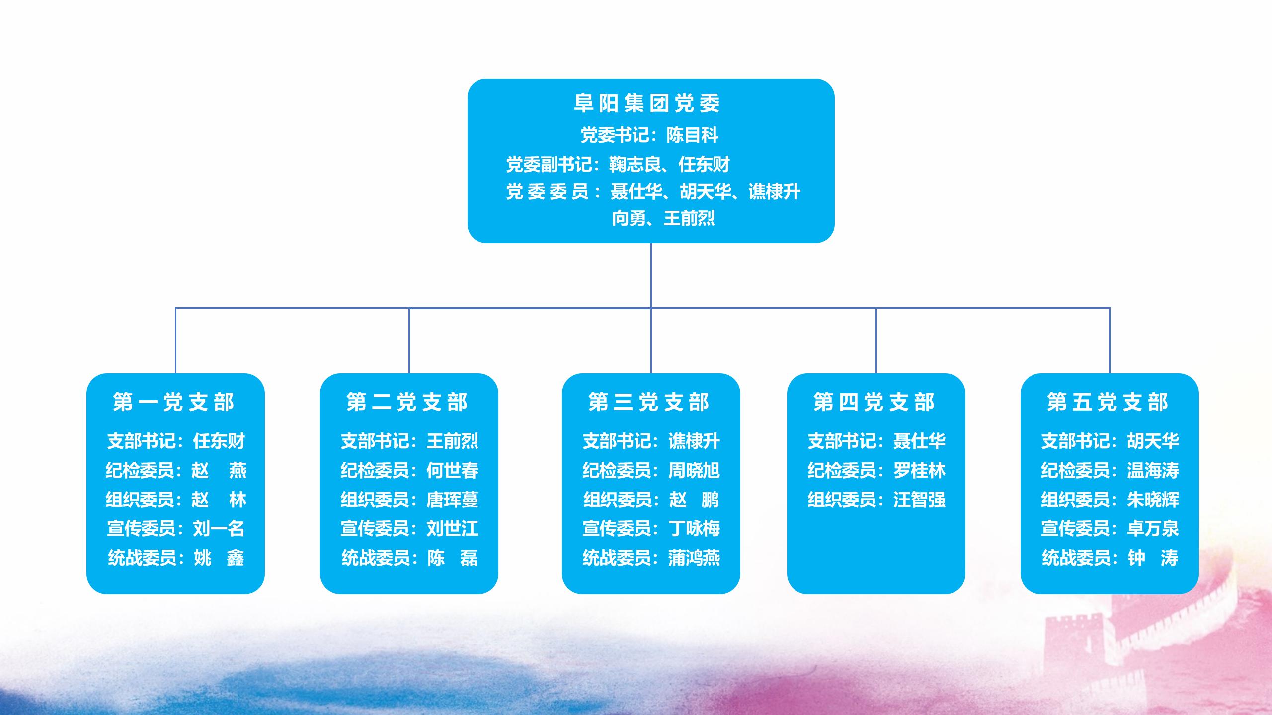 為進(jìn)一步增強(qiáng)黨的組織建設(shè),充分發(fā)揮基層黨組織的政治核心和戰(zhàn)斗堡壘作用,更好地為阜陽集團(tuán)的發(fā)展提供組織保證和思想保證,中共瀘州阜陽投資集團(tuán)有限公司委員會。